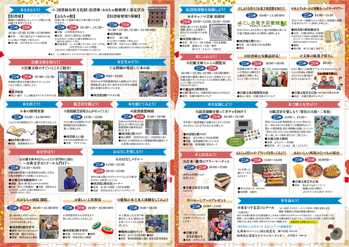 西尾市岩瀬文庫と西尾市立図書館を会場にして、“本”をテーマにした様々な催しが満載!