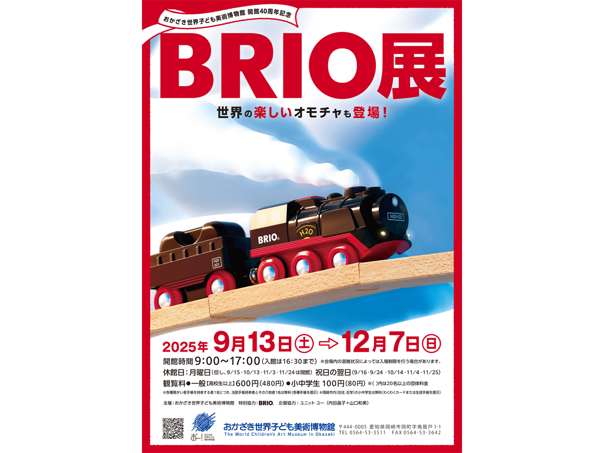 おかざき世界子ども美術博物館は2025年に開館40周年を迎えました。40周年企画の第三弾として世界中で愛されているスウェーデンのオモチャ、BRIO(ブリオ)の体験型展覧会を開催します。