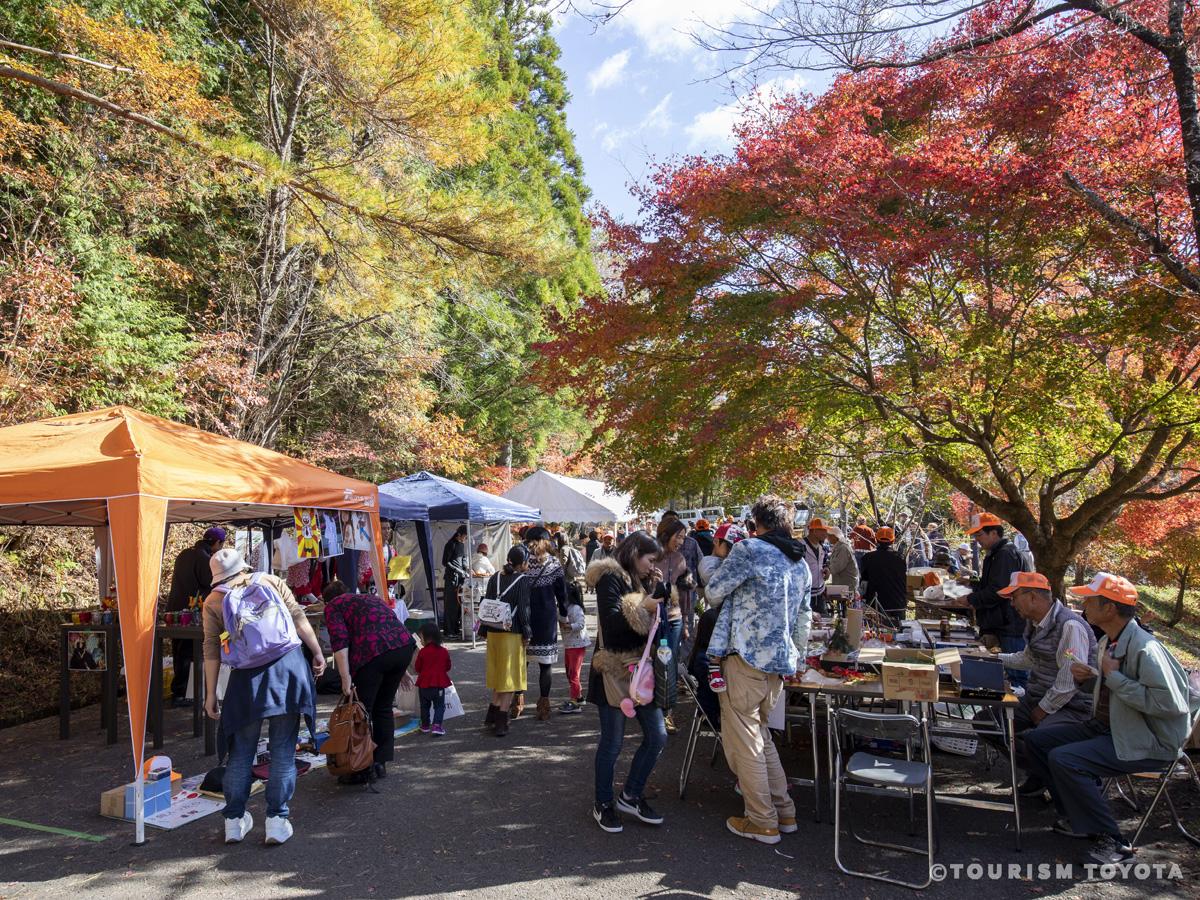 約4,000本と言われるモミジの紅葉の一番の見ごろの時期となる11月には、毎年、もみじまつりが開催されます。
