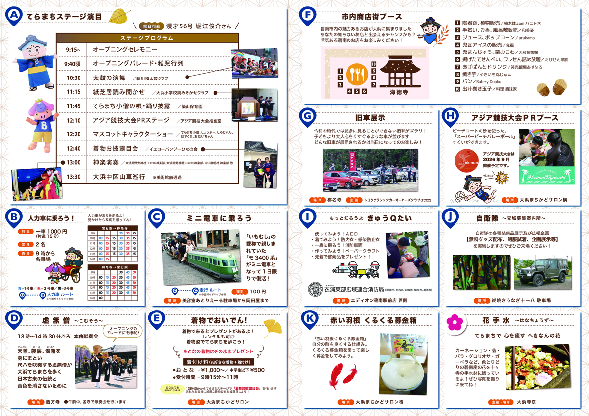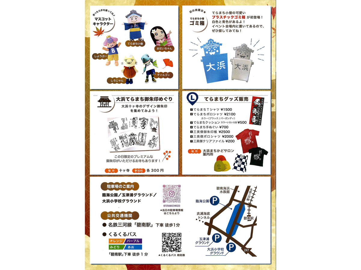 歩きながら大浜の歴史、文化、伝統などに触れられるイベントです。てらまち小僧も遊びにくるかも?